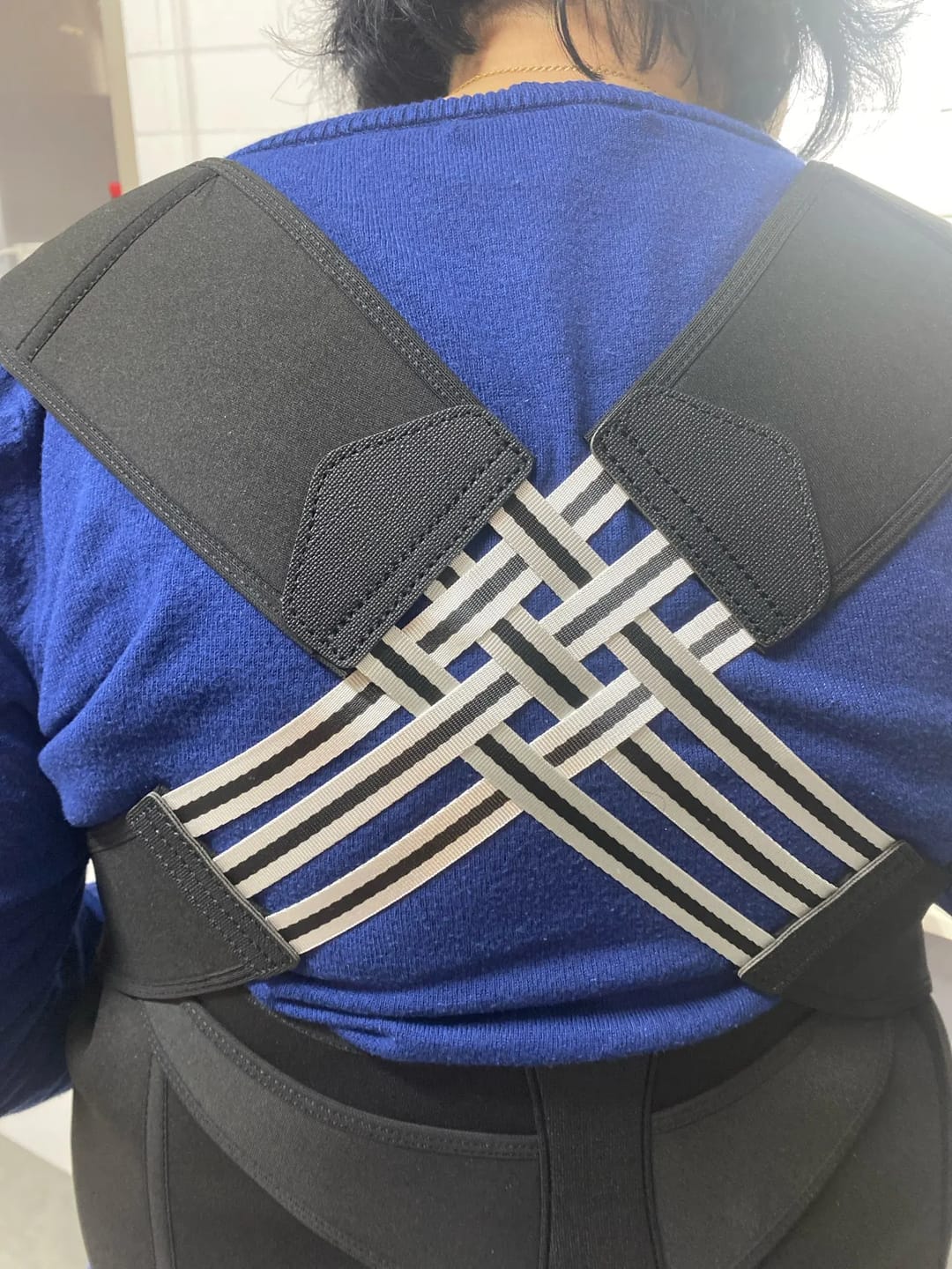 "I bought this because I sit at a desk all day and my neck was always stiff by the evening. At first, I thought it would be uncomfortable or show under my clothes, but it’s actually lightweight and fits snugly. I wear it under my work shirt and no one notices. After about a week, I started sitting straighter without even thinking about it. I'm 5'4" and about 145 lbs — the S/M size fits perfectly. Totally recommend it if you're on a computer all day!"
